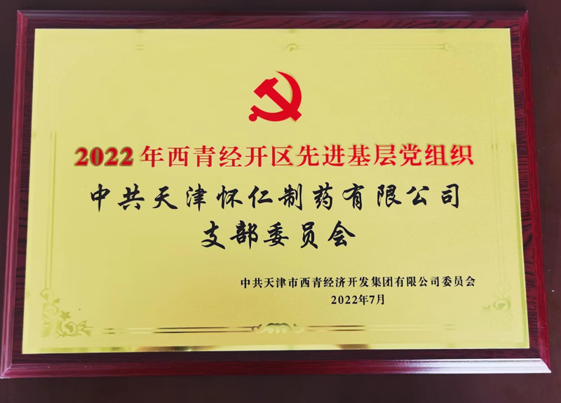 天津懷仁制藥有限公司黨支部被經(jīng)開集團黨委評為“2022年先進基層黨組織”